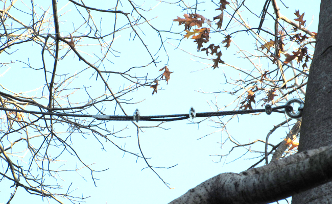 We also install steel cabling, which consists of wire secured to anchors inserted into the tree.